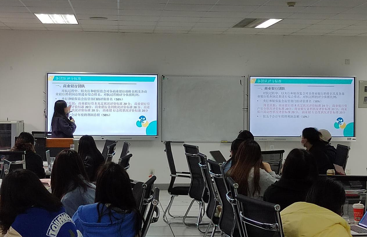 11月26日上午,金融系教师康明惠对即将进入决赛的同学进行了集中培训,讲解比赛规则、流程及要求,并为同学们答疑解惑。