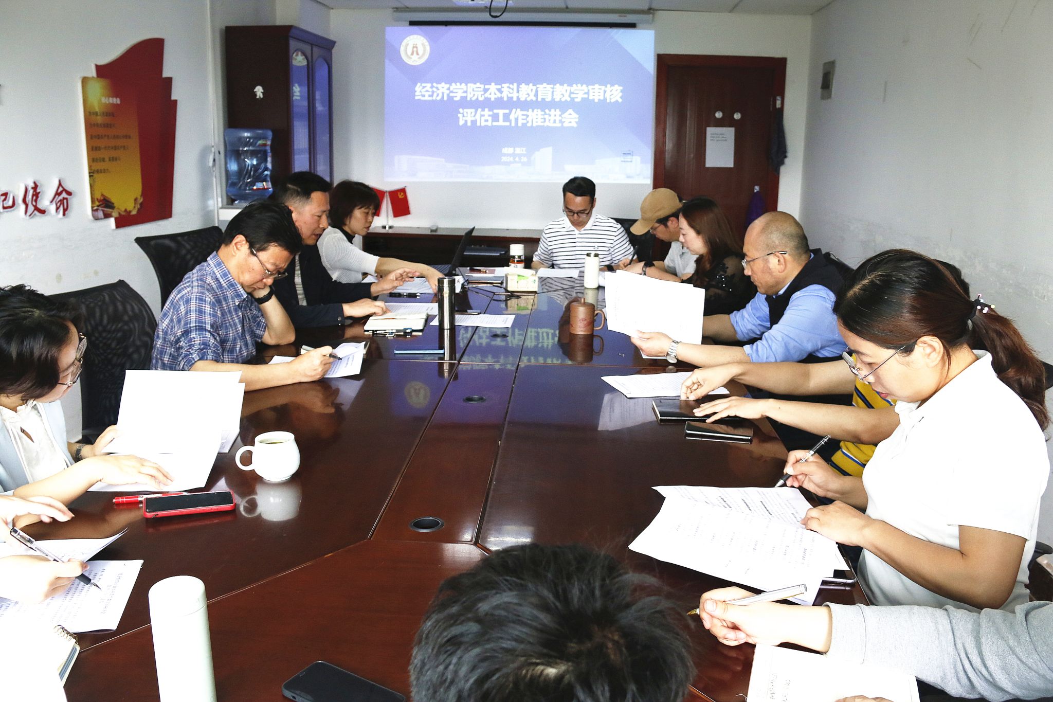 4月26日上午,太阳集团tyc9728在1教425会议室召开了本科教育教学审核评估工作推进会。学院院长曾维忠、副院长吴平、各系室中心负责人、教学督导组等全体评建工作组成员参加会议。
