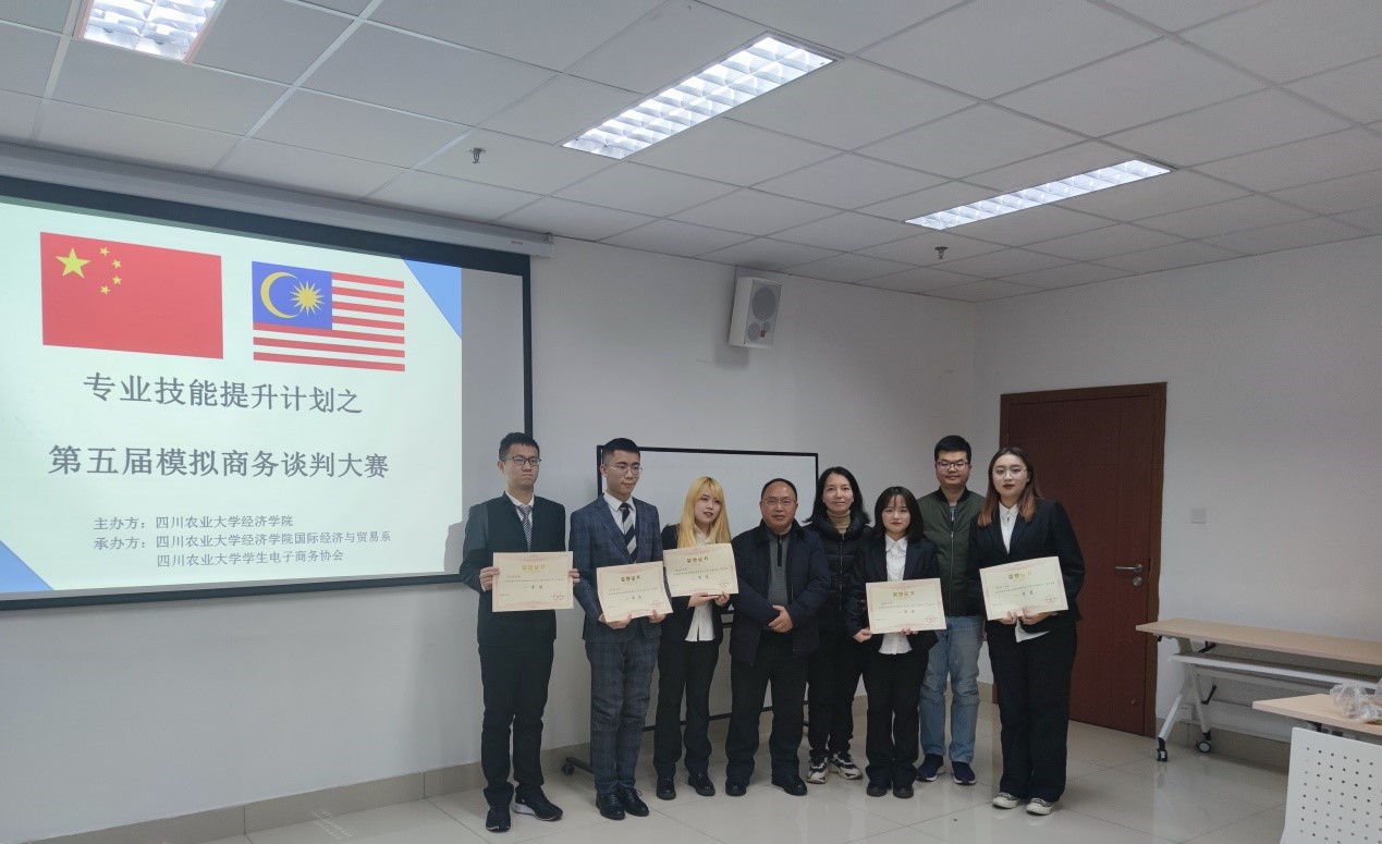 12月1日下午,由太阳集团tyc9728主办,太阳集团tyc9728国际经济与贸易系和学生电子商务协会承办的专业技能提升计划之第五届模拟商务谈判,在成都校区7教14楼报告厅圆满落幕。来自成都校区的四支队伍围绕“马来西亚热带水果出口贸易”进行了模拟商务谈判。国贸系专业负责人李阳明,国贸系系副主任宋涛以及本次模拟商务谈判大赛的指导老师谢玉佳应邀出席。