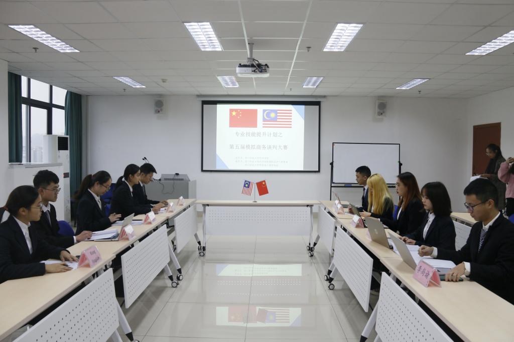在主持人宣布大赛正式开始后,买卖双方队伍各自进行了三分钟的己方背景阐述,随即开始了紧张激烈的正式谈判。谈判过程中,通过团队密切配合,本着友好协商和双方共赢的原则,队员们全身心融入到了商务谈判的过程当中。最后,买卖双方就谈判结果作出总结并表达了长久合作的诚挚希望。