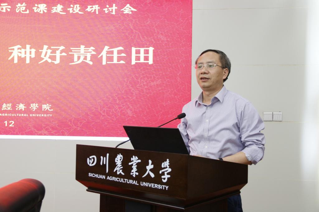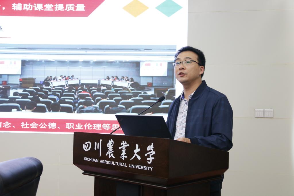 学院党委书记漆雁斌以“筑牢‘立德树人’根本,奏响‘三全育人’强音”为题,从牢记立德树人初心使命,始终扛稳抓紧党建主体责任;夯实三全育人工作队伍,聚焦学科专业抓准抓实党建;着力种好课程思政责任田,牢固树立强农兴农使命感三个方面汇报了学院落实“立德树人”、践行“三全育人”的具体做法。重点介绍了教材、素材、课件相协同,打牢课程思政硬件基础;探索思政元素融入考试环节,充分发挥课程思政育人实效;探索课程、支部、基地联建,用深化改革开放的实践帮助学生认清时代使命等课程思政建设的具体探索。
