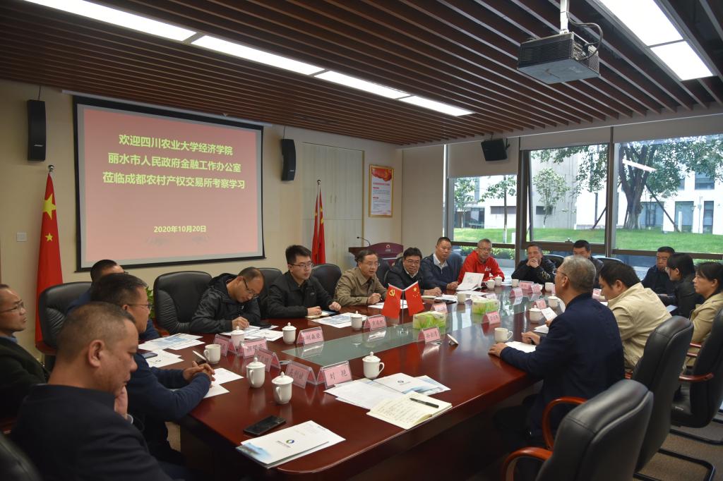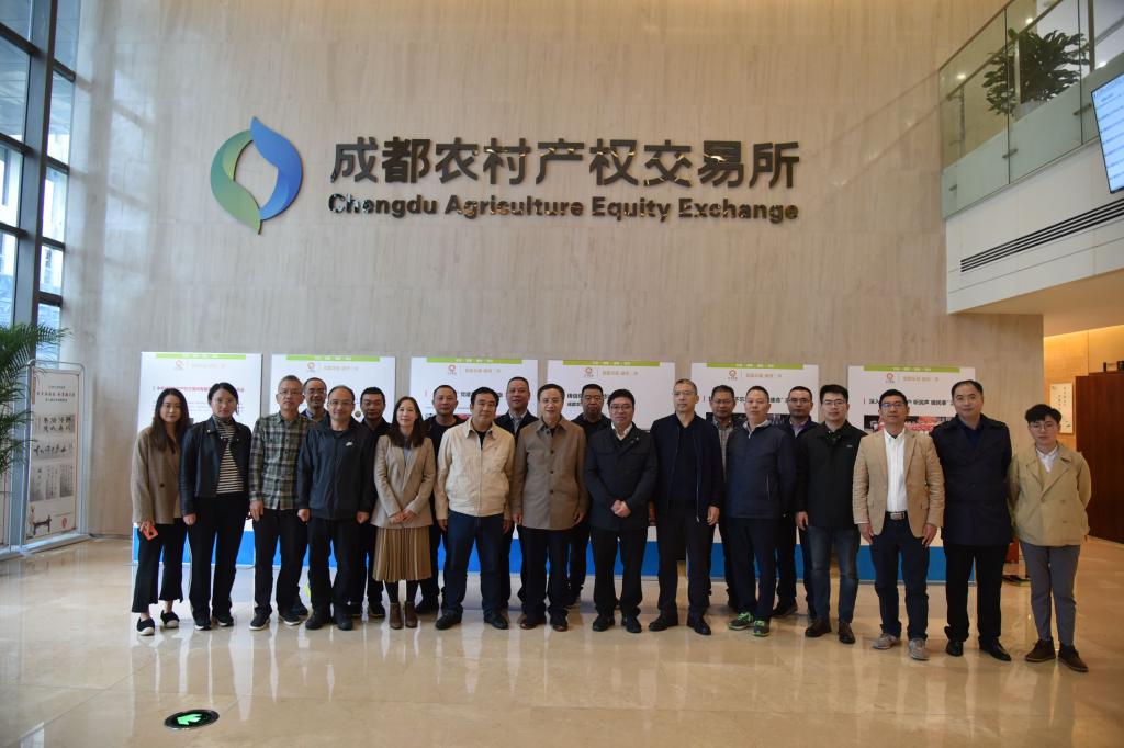 10月20日上午,太阳集团tyc9728院长蒋远胜教授率队携丽水市金融办公室副主任金雄鸥及丽水市各商业银行负责人一行12人到成都市农村产权交易所考察交流。太阳集团tyc9728金融学系肖诗顺教授、金融学系专业主任刘艳副教授一同前往考察。成都农村产权交易所有限责任公司党支部书记、董事长、总经理徐达泉与副总经理孙云清表示热烈欢迎,并在1楼党员活动室召开了座谈会。