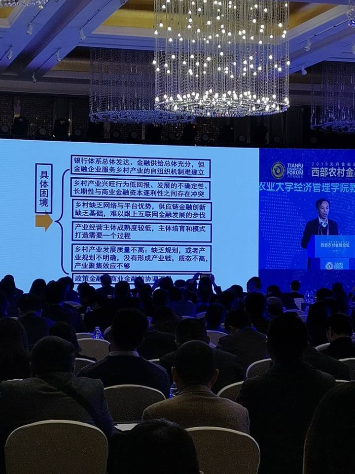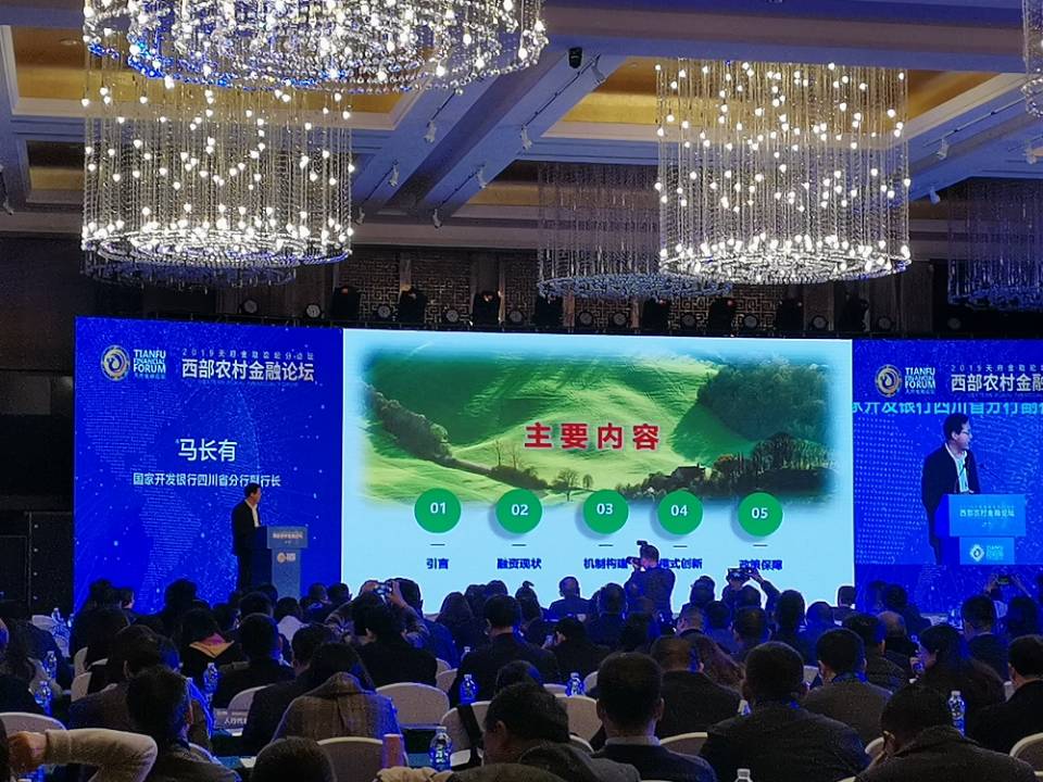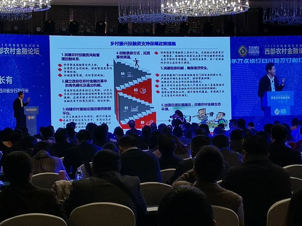 2019年11月22日11点,中国农业大学经济管理学院教授、博士生导师何广文教授、国家金融与发展实验室副主任曾刚、国家金融与发展实验室特聘研究员、新网银行首席研究员董希淼、国家开发银行四川省分行副行长马长有、四川省农村信用社联合社党委副书记谭红杰作了“金融支持乡村振兴的实践与创新”的主旨演讲。主旨演讲由何广文主持