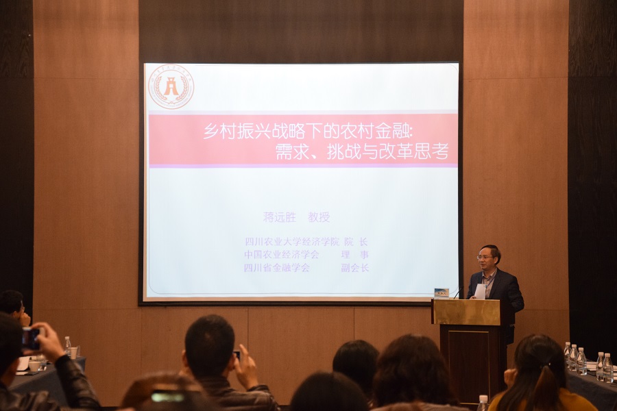 会议期间,蒋远胜教授在中国农村改革40年,实施乡村振兴战略专题会场进行题为《乡村振兴战略下的农村金融:需求、挑战与改革思考》的主题报告。结合国外经验,蒋远胜教授提出乡村振兴是一个多水平、多主体和多方面的农村发展过程,这一过程需要协同财政、金融和工商资本,农户的融资结构;既深化农村金融机构和组织的基础性作用,深化基于农村产权的金融产品和服务,又要将金融与现代信息技术集合,完善农村信用环境和推进基于数字技术的普惠金融创新,同时继续推进应对自然和市场风险的涉农保险产品创新,并通过奖励、补贴、税收优惠等政策工具支持“三农”金融服务。