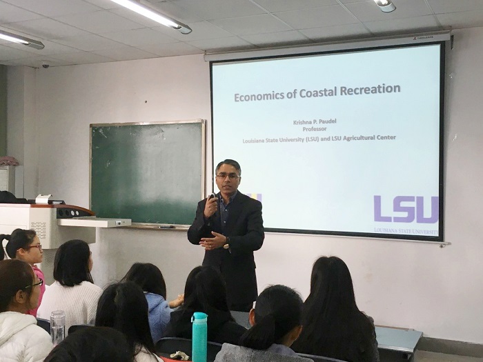 学院先后邀请美国路易斯安娜州立大学Paudel教授和西北农林科技大学经管学院孔荣教授来校做学术交流和国家自然科学基金课题申请经验分享。