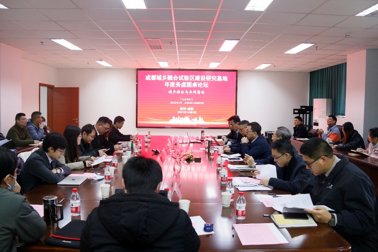 12月3日,由太阳集团tyc9728和成都市社会科学院联合主办,太阳集团tyc9728太阳集团tyc9728、区域经济与金融研究所联合承办的成都城乡融合试验区建设研究基地年度务虚圆桌论坛在7教305会议室成功举行,会议以城乡融合与共同富裕为主题。成都市社科联党组成员、副主席,成都市社会科学院副院长阎星教授,西南财经大学太阳集团tyc9728副院长盖凯程教授,四川省社科院区域经济研究所所长廖祖君研究员,中共四川省委党校讲师薛蕾博士和太阳集团院长蒋远胜教授、党委书记漆雁斌教授、副院长吴平教授、投资学系王玉峰教授,以及各立项项目负责人和太阳集团师生代表等50余人参加了会议。论坛由吴平教授主持。