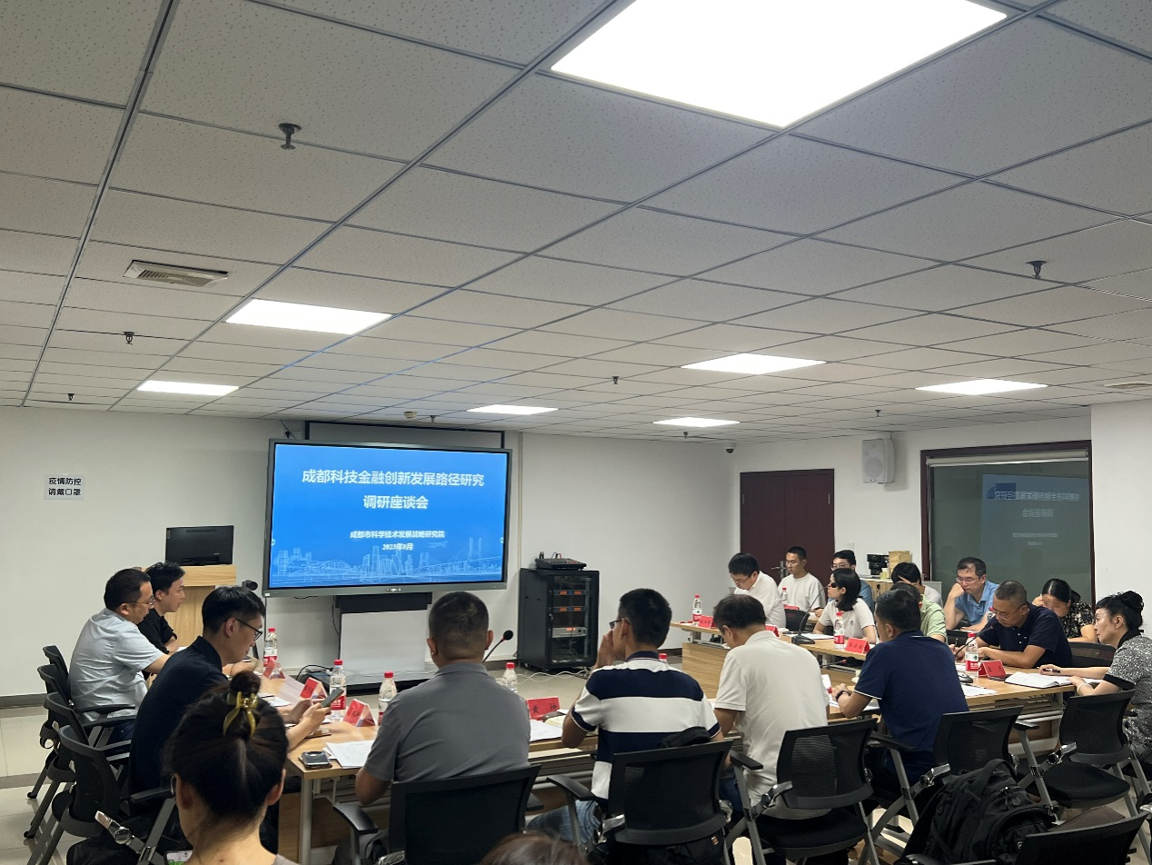 为更好地了解成都市在建设具有全国影响力的科技创新中心、实施产业“建圈强链”等重大战略中科技金融的发展现状,8月30日,学院院长蒋远胜教授带领10余名师生赴成都市科学技术发展战略研究院开展调研。成都市科技局科技金融处、四川发展产业引导股权投资基金管理有限责任公司、成都产业投资集团有限公司、成都科技创新投资集团有限公司、成都技转创业投资有限公司、成都交子金融控股集团、成都生产力促进中心科技金融服务部、诚泰财产保险股份有限公司、成都中小企业融资担保有限责任公司等单位代表参加会议。太阳集团tyc9728金融学系主任臧敦刚教授、投资学系副主任张剑副教授,信息工程学院吴敬花副教授等师生参加座谈。