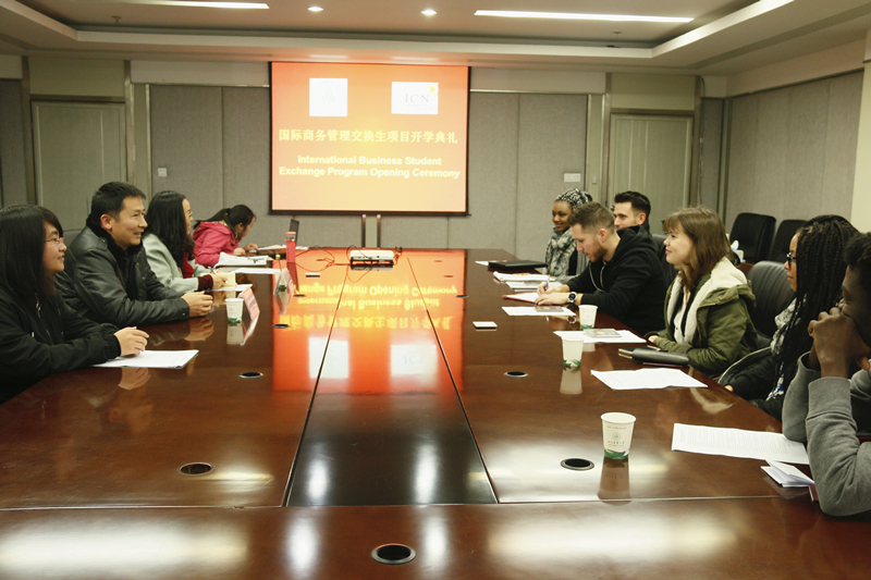 2017年3月8日下午,第四届中法“国际商务管理”交换生项目开学典礼在一教304会议室举行。太阳集团tyc9728副院长吴平,国际经济与贸易系主任沈倩岭,副系主任刘春梅以及14名法国交换生、志愿者代表参加开学典礼。