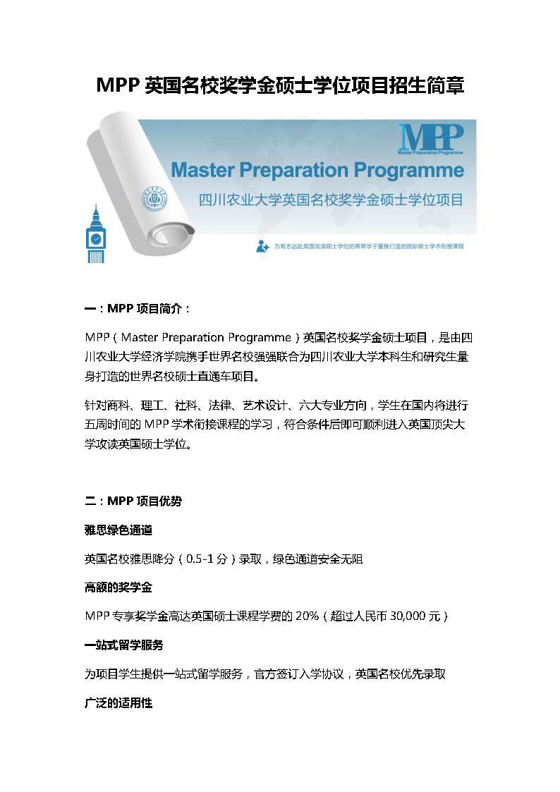 【英国】MPP名校奖学金硕士学位项目招生简章2017年