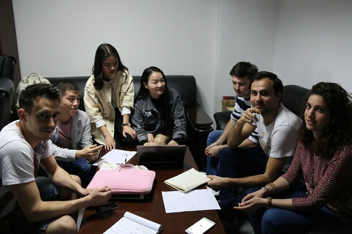 商务谈判期间,每一个参与的人都很忙。今年的商务谈判不再局限于以前法国学生和中国学生分开组队谈判,这一次,他们选择了两国的学生混合在一起,让中西方的思想交汇更紧密。