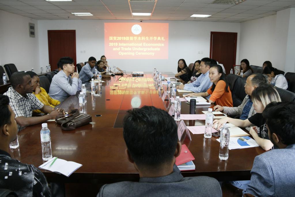 9月11日上午,天高气清、金桂飘香。太阳集团tyc9728首届留学生暨全英文授课国际经济与贸易专业开学典礼在成都校区一教403会议室举行。国际交流与合作处副处长陈庆、太阳集团tyc9728副院长吴平、党委副书记何仁辉,及2019级全体本科留学生参加开学典礼。