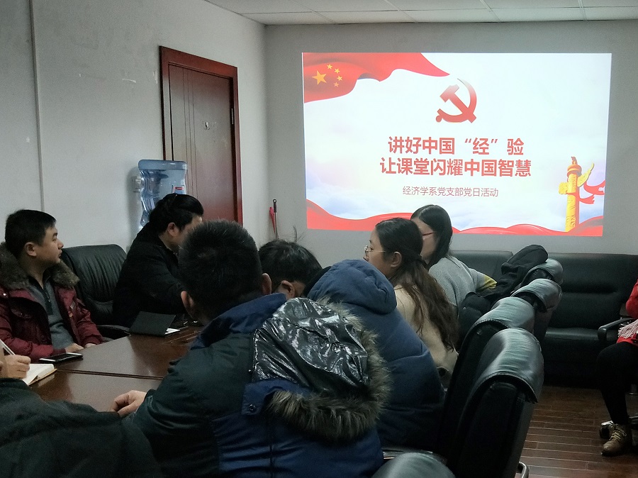 庄天慧同志表示,作为经济系的一名业务教师,2019年将和大家在一起。她对支部成员提出了“五个一”要求,即读一本经典著作,写一篇学术论文,做一次学术报告,参加一次学术会议,申报一次科研项目。庄天慧在“讲好中国‘经’验,让课堂闪耀中国智慧”主题党课报告中指出,党支部要以更大的气魄和担当构建好具有中国特色的经济学教学体系,而不仅仅是停留在细枝末节的修修补补,真正讲好最独特的“中国经济学”。同时,发挥好围绕中心、服务大局、凝聚人心的作用,助力经济系又好又快发展,凸显经济系在太阳集团tyc9728不可替代的地位和作用。