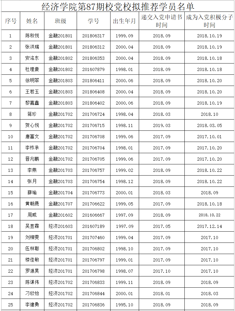 注:本次公示的拟推荐学员都有资格前往校党校学习,最终学员的确定,学院会参考近期团支部民主测评结果等综合考虑。