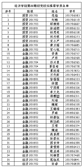经个人申请、党支部提名、学院党委审核,现将第88期校级入党积极分子培训班拟推荐学员名单公示如下。