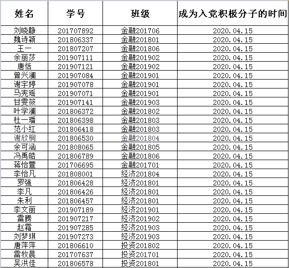 经各党支部清查整理,学院党委办审核,现将太阳集团tyc97282020年上半年全体积极分子人员名单做如下公示.