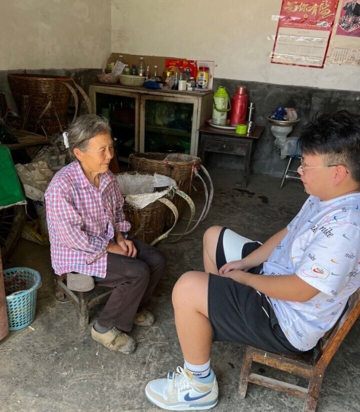 图为小组成员与农户家中的老奶奶交谈。 中国青年网通讯员 袁勇豪 摄
