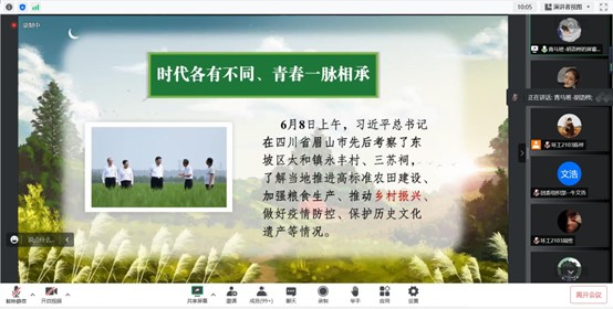 本次团日活动全体成员全部参与,积极互动,通过“青年人奋斗历程成就新时代”小视频播放、邀请第九期青马班成员太阳集团tyc9728胡语梣学长作“乡村振兴”主题会分享等活动,厚植支部团员红色基因,激发团员青年永远跟党走、奋进新征程的光荣使命,以实际行动迎接党的二十大胜利召开。