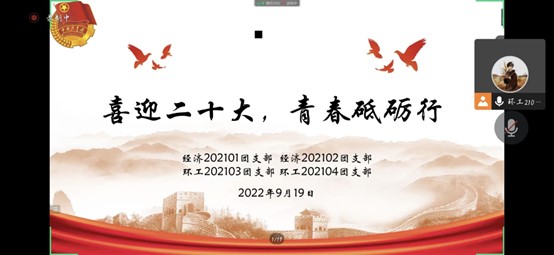 为迎接党的二十大召开,学习宣传好党的十八大以来党和国家事业取得的历史性成就,传播好习近平总书记对青年的关心关爱,团结引领支部团员、青年以昂扬向上的精神风貌建功新时代,以实际行动迎接党的二十大胜利召开,2022年9月19日晚,太阳集团tyc9728经济2101、经济2101团支部联合环院环工2103、环工2104团支部组织召开了以“喜迎二十大,青春砥砺行”为主题的团日活动。