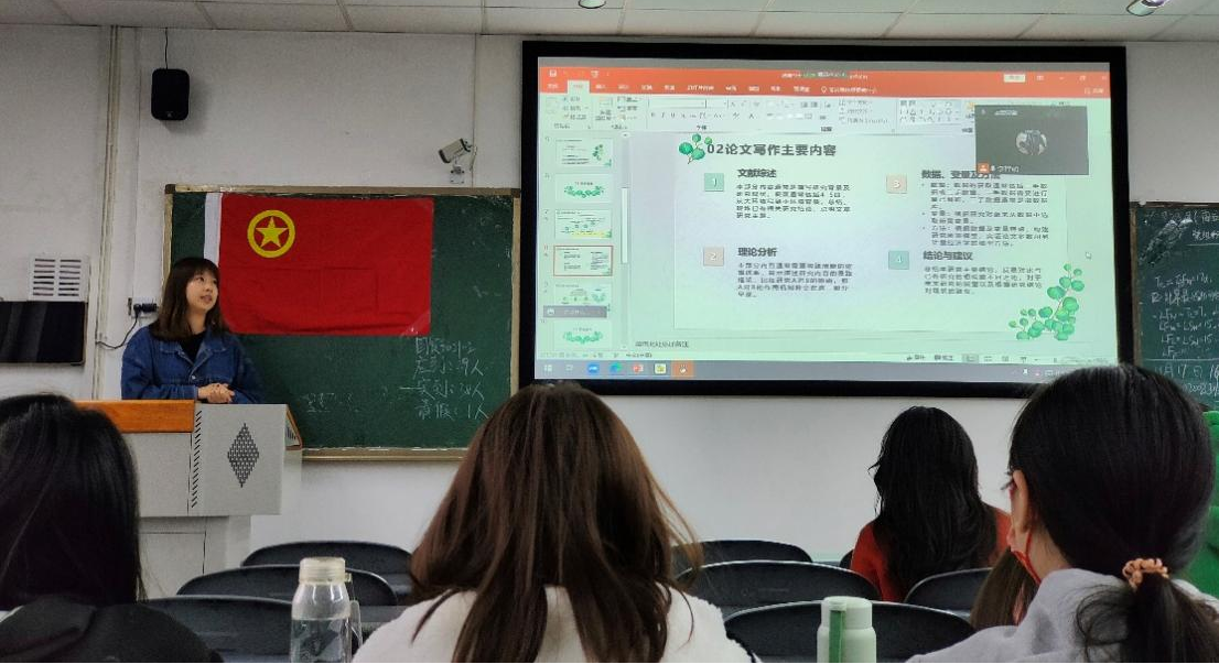国家奖学金获得者、保研至厦门大学的赵霜同学根据不同班级的具体情况为大家进行经验分享,她结合自身经历与学习生活中的体悟,针对保研时间节点及流程、面试经历、课程学习等进行详细讲解,使同学们更加清楚合理规划时间的重要性;保研至电子科技大学的宋一鸣同学以论文写作为着眼点,为大家重点介绍了论文写作的主要方法、资源搜集的途径等内容,使同学们更加明确科研之路贵在坚持;感恩中国近现代科学家奖学金获得者、保研至四川大学的胡语梣同学从顺风顺水与自我怀疑两面来讲述自己大学的学习经历,从多个角度阐述了自己大学学习、生活、工作中的心路历程,拨开云雾见远路,坚定了同学们奋发努力的决心。