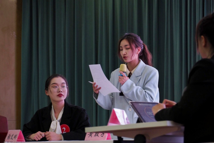 本次大赛总决赛共分三轮进行。在首轮“选手自我介绍+职场案例分析”环节,黄殷子围绕求职意向展开,结合自身学习成绩、奖项荣誉和实践经历等方面展现出了良好的人岗匹配度。“很荣幸作为无领导小组讨论环节的总结发言人,恰巧此次题目与经济密切相关,作为经济学子,我将结合专业知识来对此次互联网消费的议题做分析、归纳与总结。”黄殷子凭借优秀的表达能力和敏捷的逻辑思维在次轮“无领导小组讨论”环节脱颖而出,精彩发言令在场评委和观众频频点头。三轮“职场面对面”环节,黄殷子从容面对面试官提出的 “岗位认知、自身优势、岗位匹配度”等问题,展现了优秀的职场应变能力,体现了其职场优秀人才的潜质。