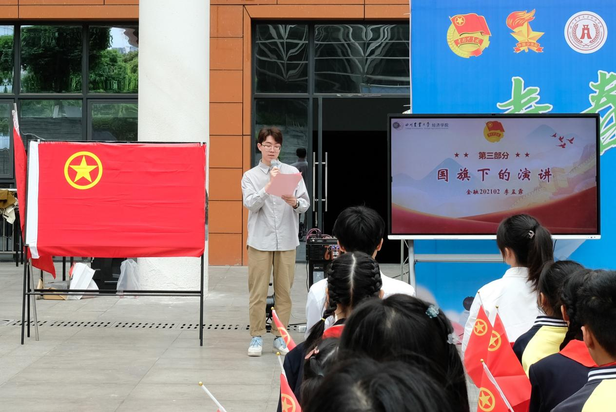 忆五四感昔年峥嵘,望前路展青春今朝:邀请国旗护卫队与学院团学干部共同于国旗下讲述五四精神,重温习近平总书记的金句,结合《川农大红色档案》开展主题微团课分享,开展支部集体朗诵活动,展现建功新时代的精神面貌。