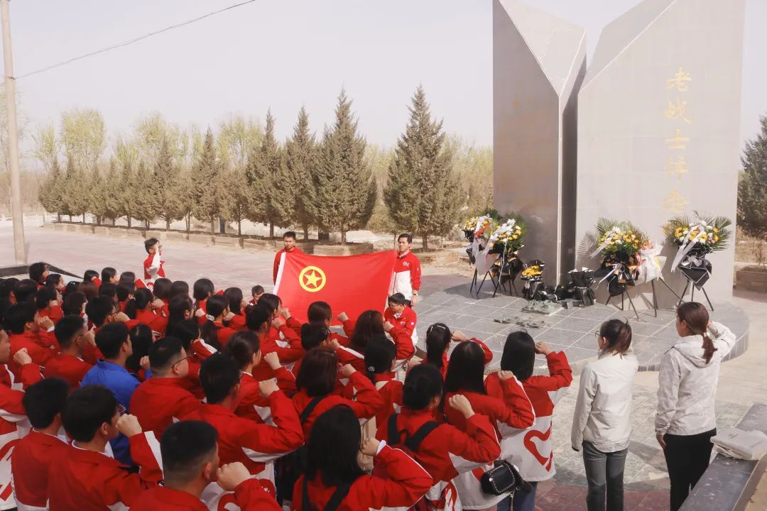 三八线老兵纪念园缅怀英烈,重温誓词:团县委组织团员献花祭扫、瞻仰碑文,全体学员在陵园内感怀历史、观摩悼念。追忆人民军队进军和田的历史壮举,重温青春誓言。