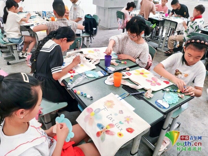 图为小朋友制作“个性帆布袋”。 中国青年网通讯员 李卓宸 摄
