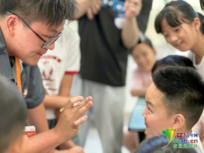 图为志愿者向小朋友们表演魔术。中国青年网通讯员 代芸萱 摄