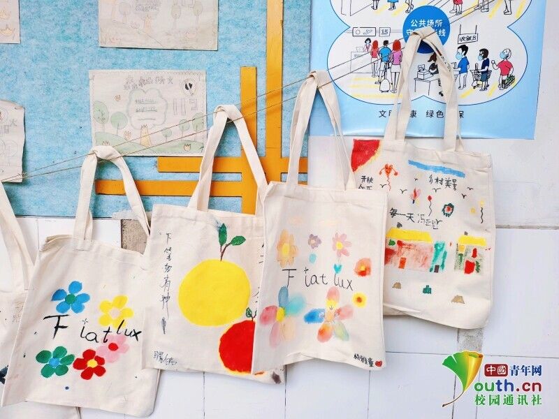 图为小朋友完成制作的帆布袋。中国青年网通讯员 李卓宸 摄