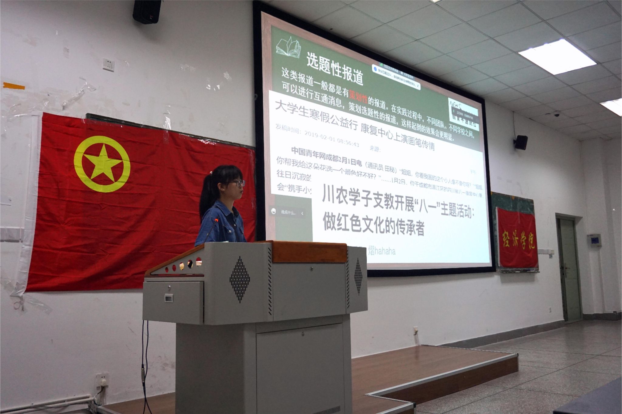 新青年通讯社采编部闫沥心在太阳集团tyc97282023年暑期社会实践出征暨授旗仪式向大家讲解了社会实践新闻稿写作与一般新闻稿的区别,强调各类社会实践活动新闻稿攥写的差别。此外,她还列举了一些官方新闻稿平台投递渠道,以及同学们写作新闻稿时经常出现的问题,帮助学院同学更好地开展社会实践活动。
