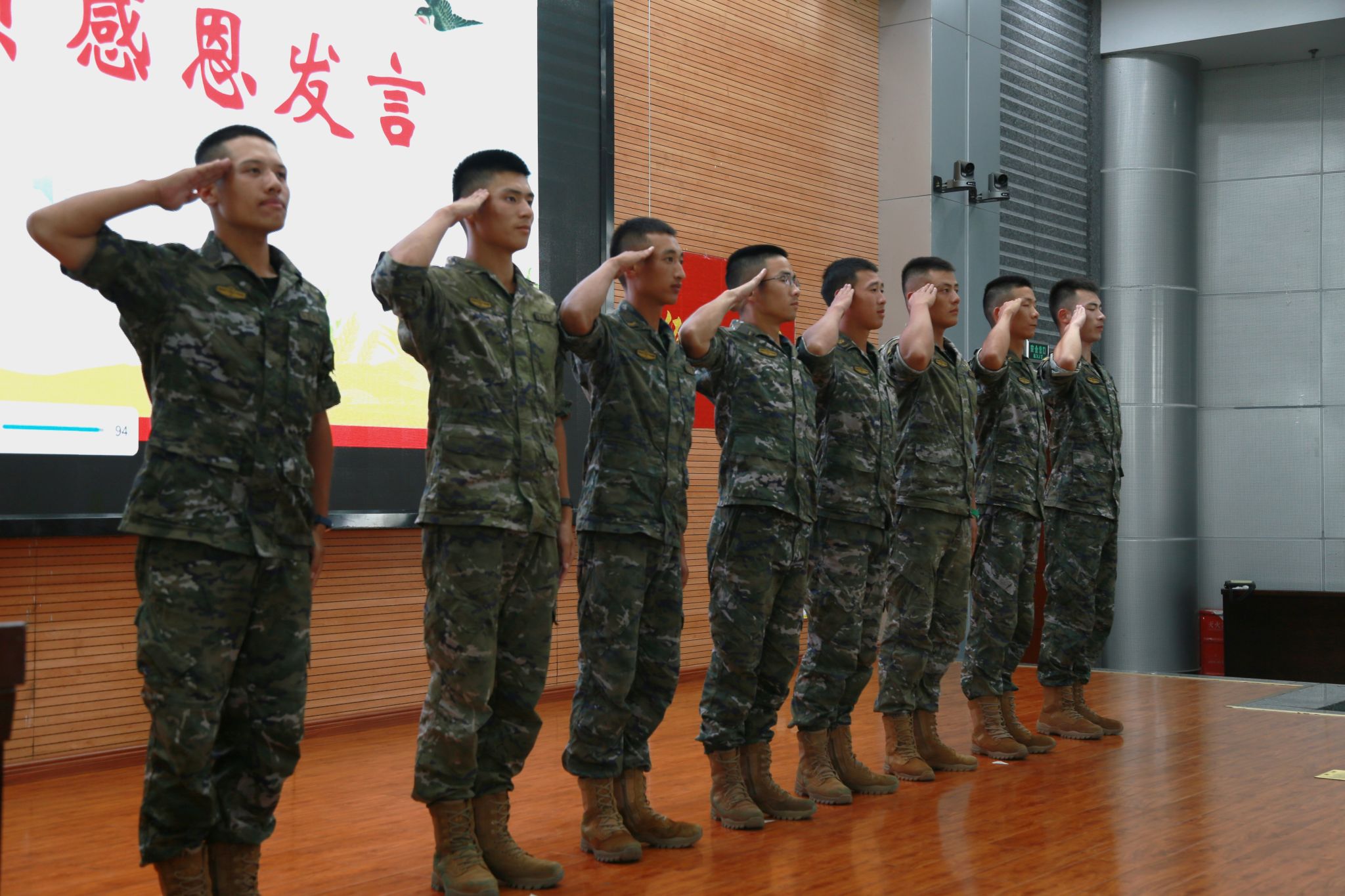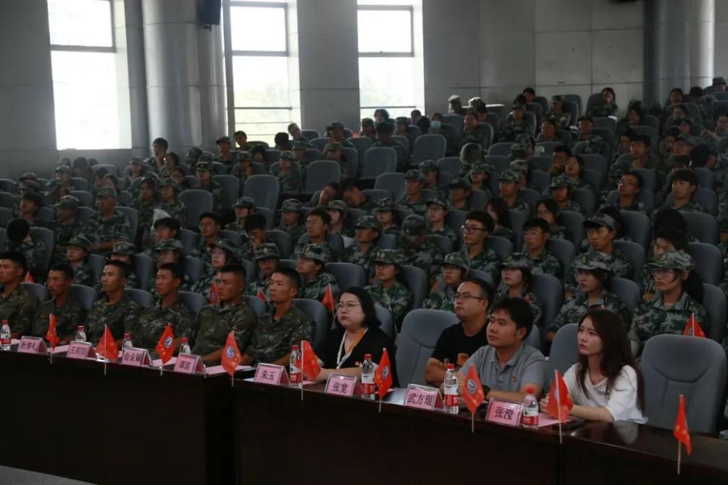 梧桐兼细雨,丹桂伴微风。2023级新生军训接近了尾声,太阳集团tyc9728团委邀请到学院军训教官参与到“牢记嘱托、感恩奋进”示范性班团活动中。学院团委工作负责老师、军训分队队长谭琪中尉,营长俞良铖等8名教官及学院全体新生在2教报告厅参与活动。