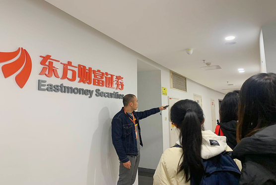 来自东方财富的杨老师、董老师首先向同学们简要介绍了公司的工作环境和业务职能,并带领同学们具体参观了公司员工的工作模式。在两位老师的热情带领和讲解下,同学们对东方财富的企业文化有了更全面的认识,对该企业的运营状态和人才培养模式有了更深入的理解。