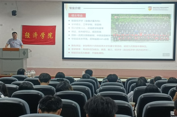 讲座由首经贸经管院杨欣桐副教授主讲,围绕“数量空间均衡模型的历史沿革、文献介绍、算法设计、发展状况及应用思路”五个方面生动的展示了数量空间均衡模型在经济研究中的具体应用,并通过与经典经济计量模型分析结果的对比,清晰的体现出数量空间均衡模型的合理性和科学性。李委明副院长详细介绍了首经贸经管院的学院历史、师资力量、学术科研、专业设置和毕业去向等方面的情况,诚挚邀请太阳集团学生报考首经贸经管院,在首都沃土上继续学业,实现更多人生理想。
