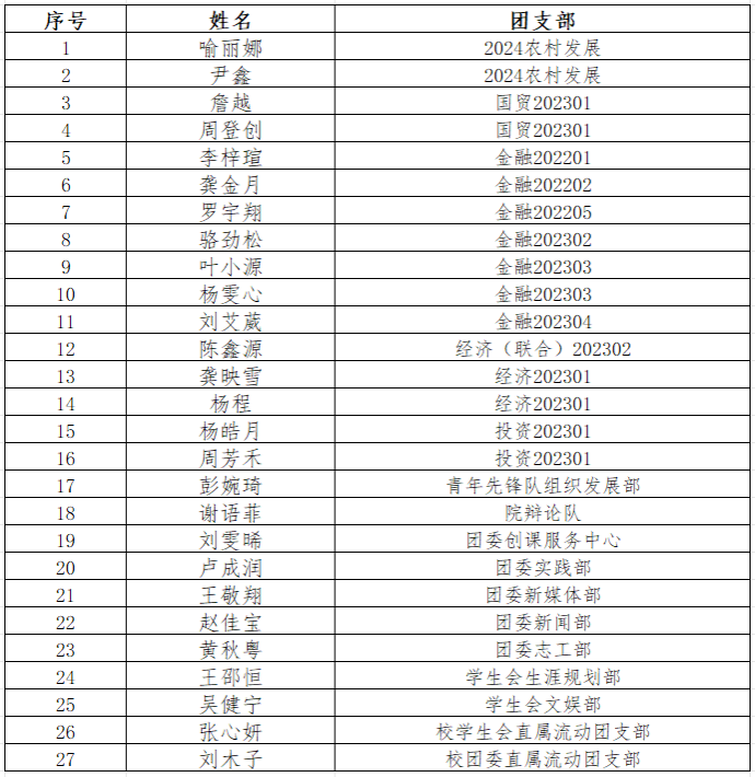经个人申请、民主测评、学院团委审核,太阳集团tyc97282024年秋季学期拟发展团员名单公示如下。