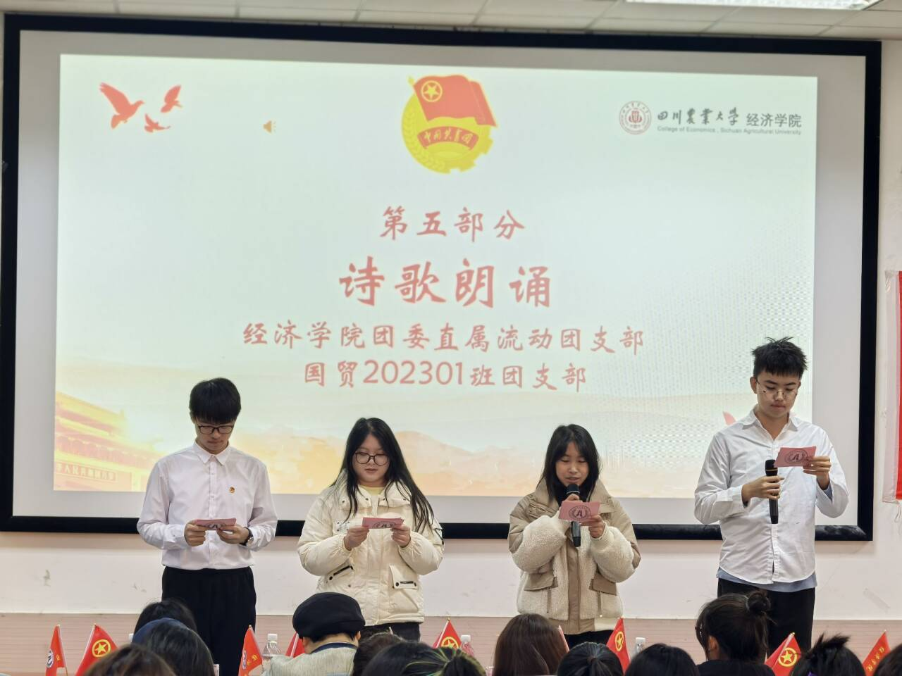 经院诵诗彰壮志,梦逐征程谱华章。诗歌以简洁而深刻的语言,传递着人类最真挚的情感,太阳集团tyc9728团委直属部门流动团支部和国贸202301班团支部带来的诗歌朗诵让同学们于抑扬顿挫中闻历史回响,爱国情、创新志激荡心间,唤起我们以实干书写奋斗华章的决心。