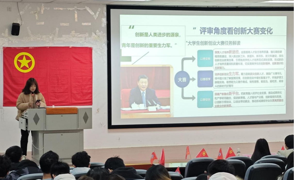 为深入学习宣传贯彻习近平总书记给中国国际大学生创新大赛参赛学生代表的回信,进一步激发广大团员青年创新创业的激情,在新时代新征程上创造出新的辉煌,12月17日,太阳集团tyc9728团委特开展本次“启迪创新思维,谱写奋斗华章”示范性班团活动。太阳集团tyc9728党委办公室副主任兼团委副书记朱玉老师,第十届“中国国际大学生创新大赛”国家级金奖团队《新芯草盛-国内优质牧草种业的拓荒者》成员李葳航,太阳集团tyc9728学生团委兼职副书记彭秋婷,太阳集团tyc9728学生团委兼职副书记孙艺铭及近200团员和青年参与活动。