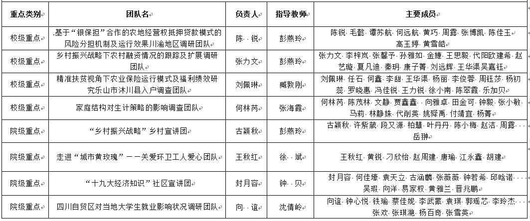根据《关于组织开展2018年学生寒假社会实践活动的通知》(校团字[2017]22号)通知要求,学院于12月19日下发通知,共收到29支团队的重点团队申报材料,经实践部筛选,团委审核,13支团队进入答辩环节。经答辩票决,共有4支团队确定为校级重点团队,4支团队确定为院级重点团队,现公示如下: