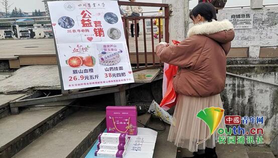 小分队成员针对不同人群的购物习惯开展了两条售卖路线。青年人习惯通过网络购物,成员便通过推广“川农牛”公众号为青年人提供购物平台;中老年人喜欢逛街购物,成员便在当地人流量大的地方摆摊宣传“川农牛”品牌并出售商品。