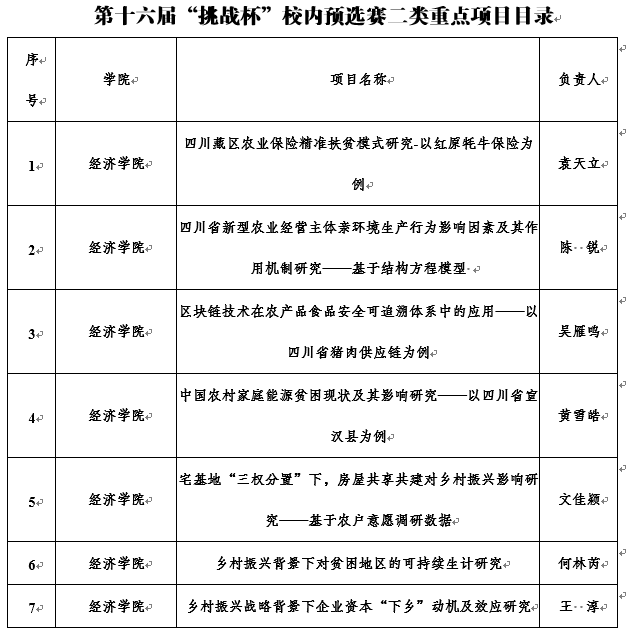 1.第十六届“挑战杯”校内预选赛重点项目汇总表