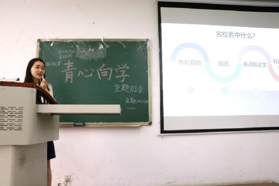 班会由小班学习委员卓震宇主持,围绕“青心向学,坚持一步一个脚印”主题,展开了社会实践、保研硬性要求、考研方向选择等内容的分享。此外,卓震宇还详细为大家理清了保研的基本要求,考研的基本流程。为师兄、师姐的分享会做铺垫。分享会的全程,场下的同学们在笔记本上认真做记录,写下的每一段文字都是渴望进步,做更好的自己的证明。