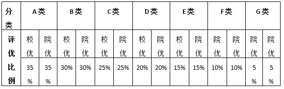 3.学院将对全院实践团队进行考核,考核不合格的团队取消团队评优资格;对考核合格的团队进行分类定级,各类团队的评优比例如下: