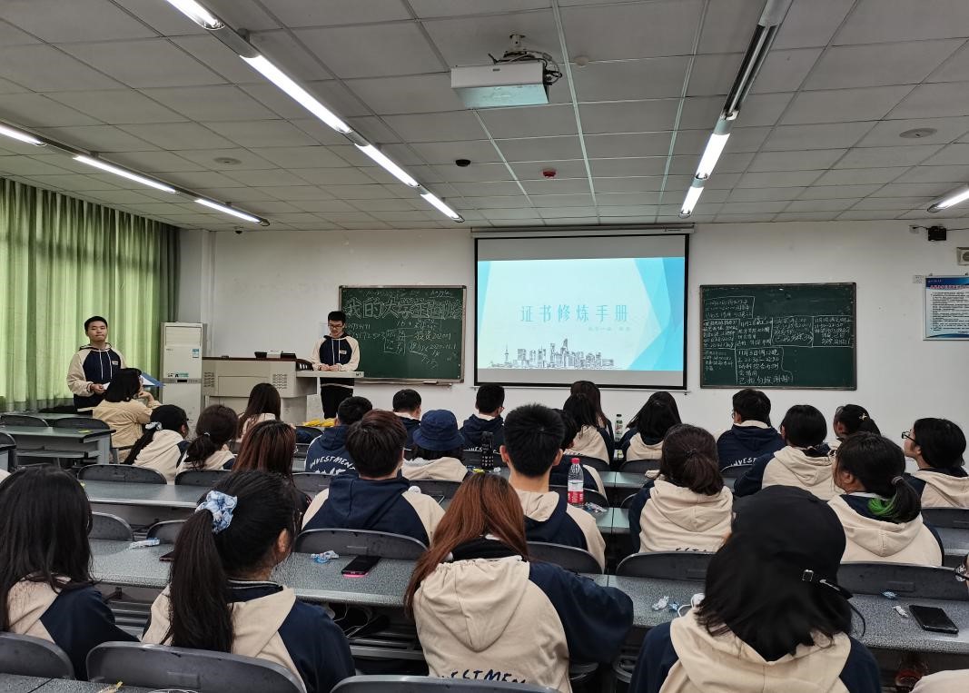陈豪学长曾任第三届学院团委组织部部长,第四届班主任助理,于2020年以专业第一考入太阳集团金融学专业攻读硕士研究生,他讲述了自己大学四年的学习、工作经历,告知了同学们大一树立目标的重要性,引导同学们制定明确的学习目标,并讲述了一些帮助自己的关于各个科目的具体学习方法。