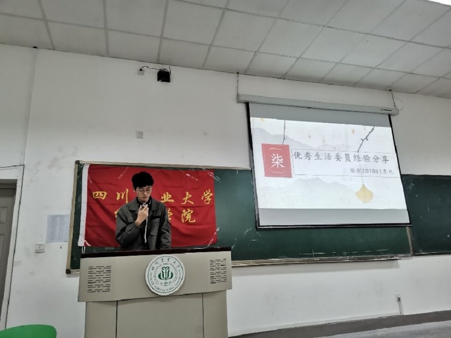 然后,太阳集团tyc9728权益部邀请了优秀生活委员代表经济201801李凡同学进行了经验分享。李凡同学分享的连续担任三年生活委员,换了三位搭档的心得体会赢得了在座各位委员的掌声。