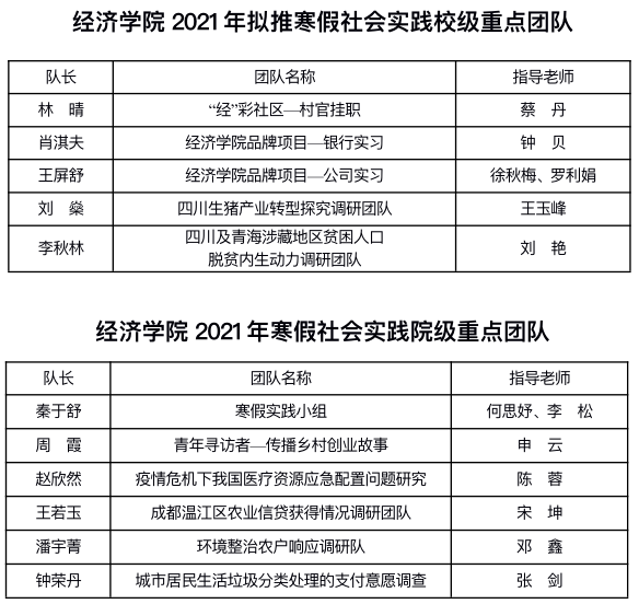 经团队申报、答辩,现将学院2021年寒假社会实践重点团队名单公式如下: