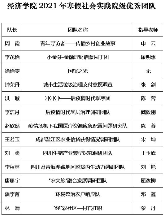 根据校团委《关于开展2021年学生寒假社会实践总结表彰的通知》,经过个人自荐、学院相关部门评议,团队申请、答辩,学院团委评审,拟表彰以下团队和个人,现予公示如下。
