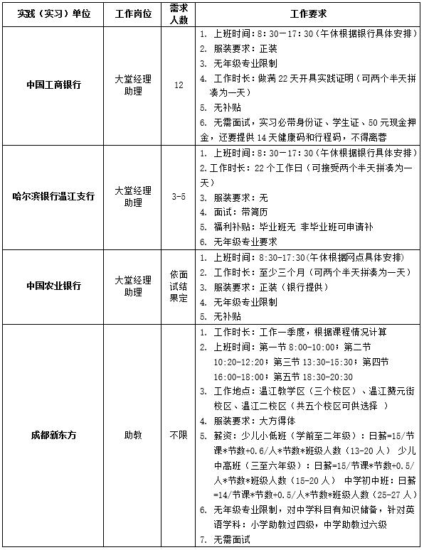 一、学院提供日常化社会实践岗位: