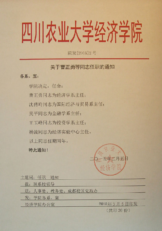 院发【2015】2号 关于曹正勇等同志任职的通知