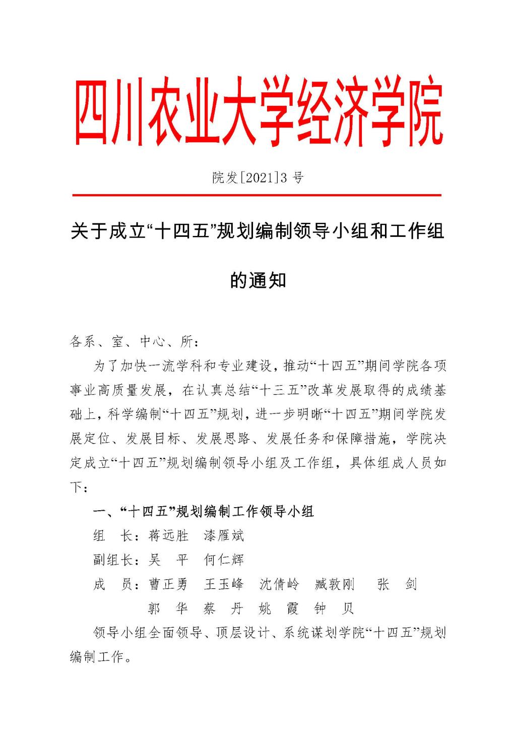 院发【2021】3号 关于成立十四五规划编制工作组的通知