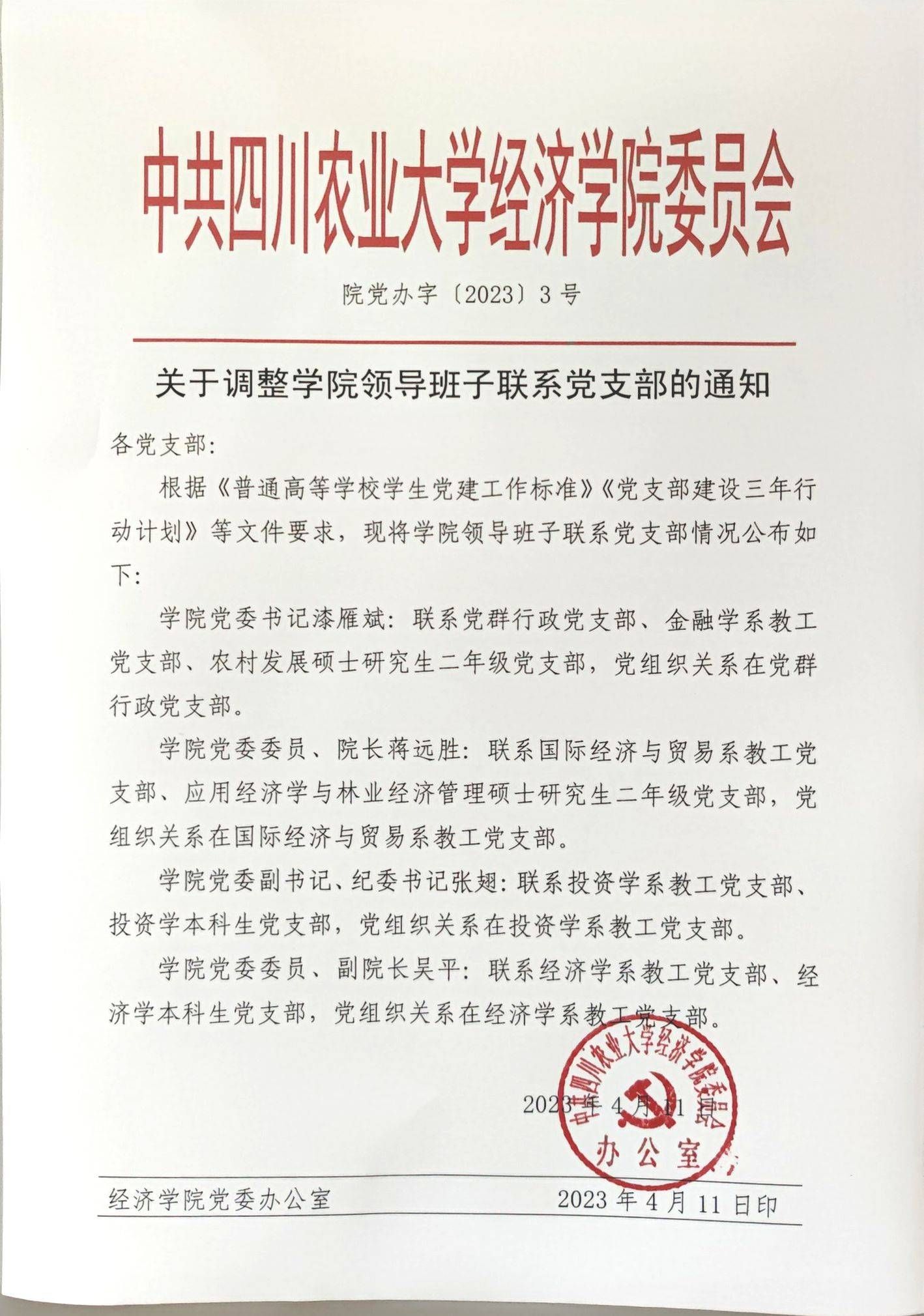 院党办字〔2023〕3号——太阳集团tyc9728党关于调整学院领导班子联系党支部的通知