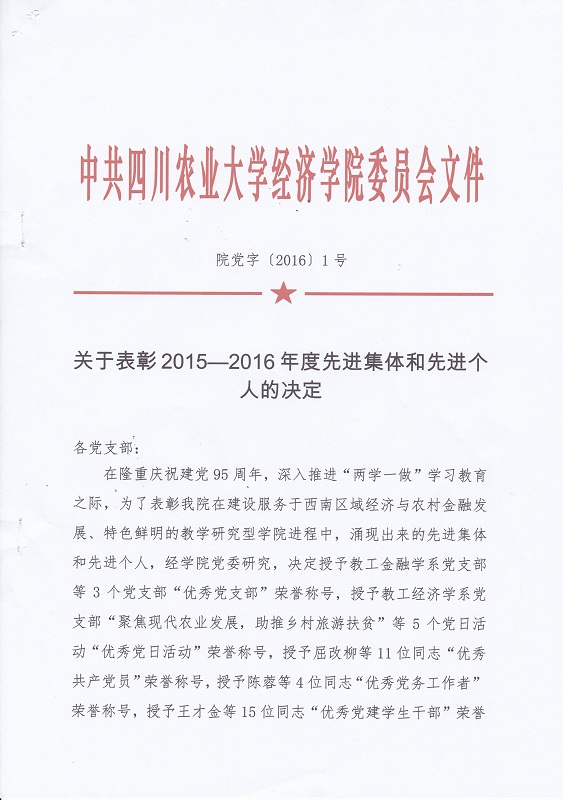 院党字[2016]1号——关于表彰2015-2016年度先进集体和先进个人的决定